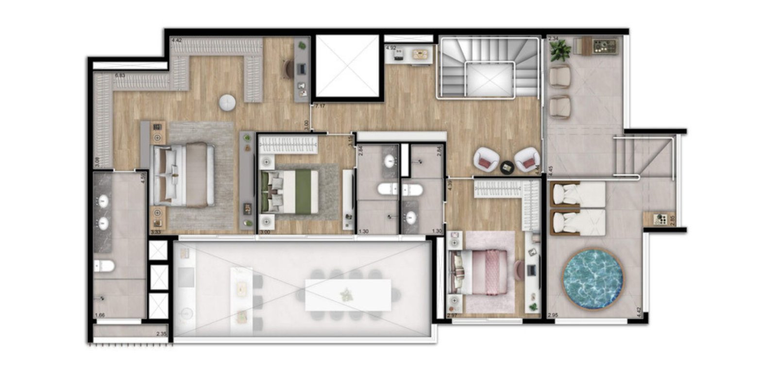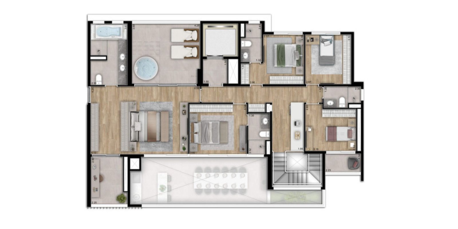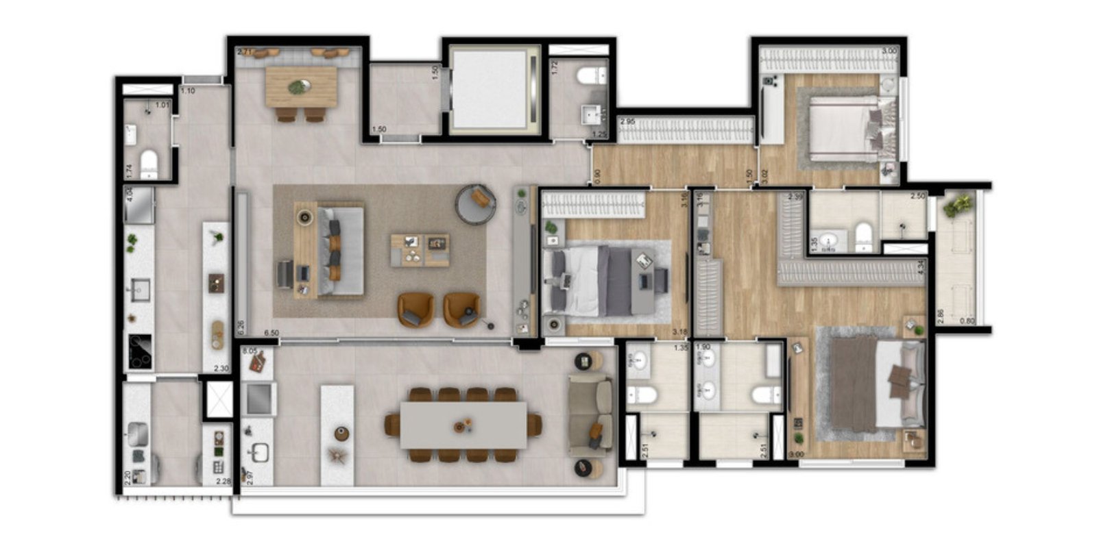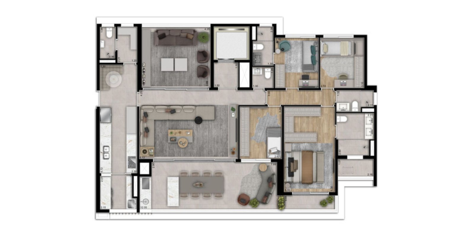 Apartamentos de 88, 142, 160 e 187m² + unidades duplex com plantas modernas e flexíveis