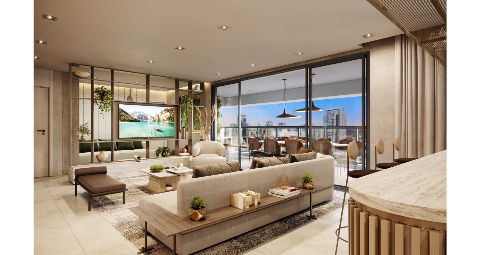 Mais luz, mais respiro, varandas generosas e janelas que cercam os ambientes, no conceito morar panorâmico.