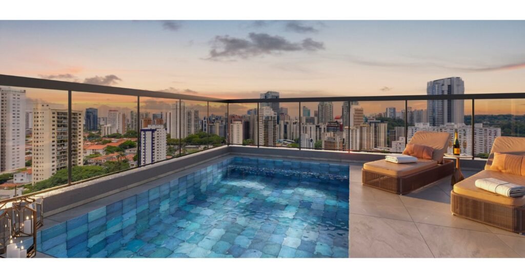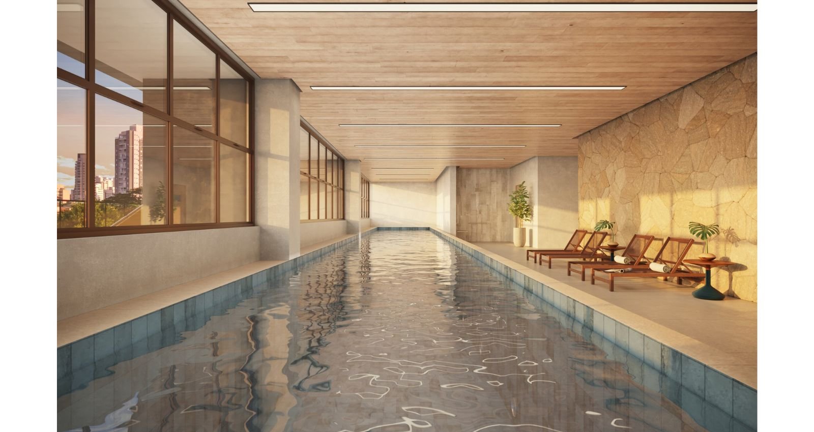 Piscina coberta, quadra de tênis, fitness completo, spa e áreas de convívio pensadas para a vida real.
